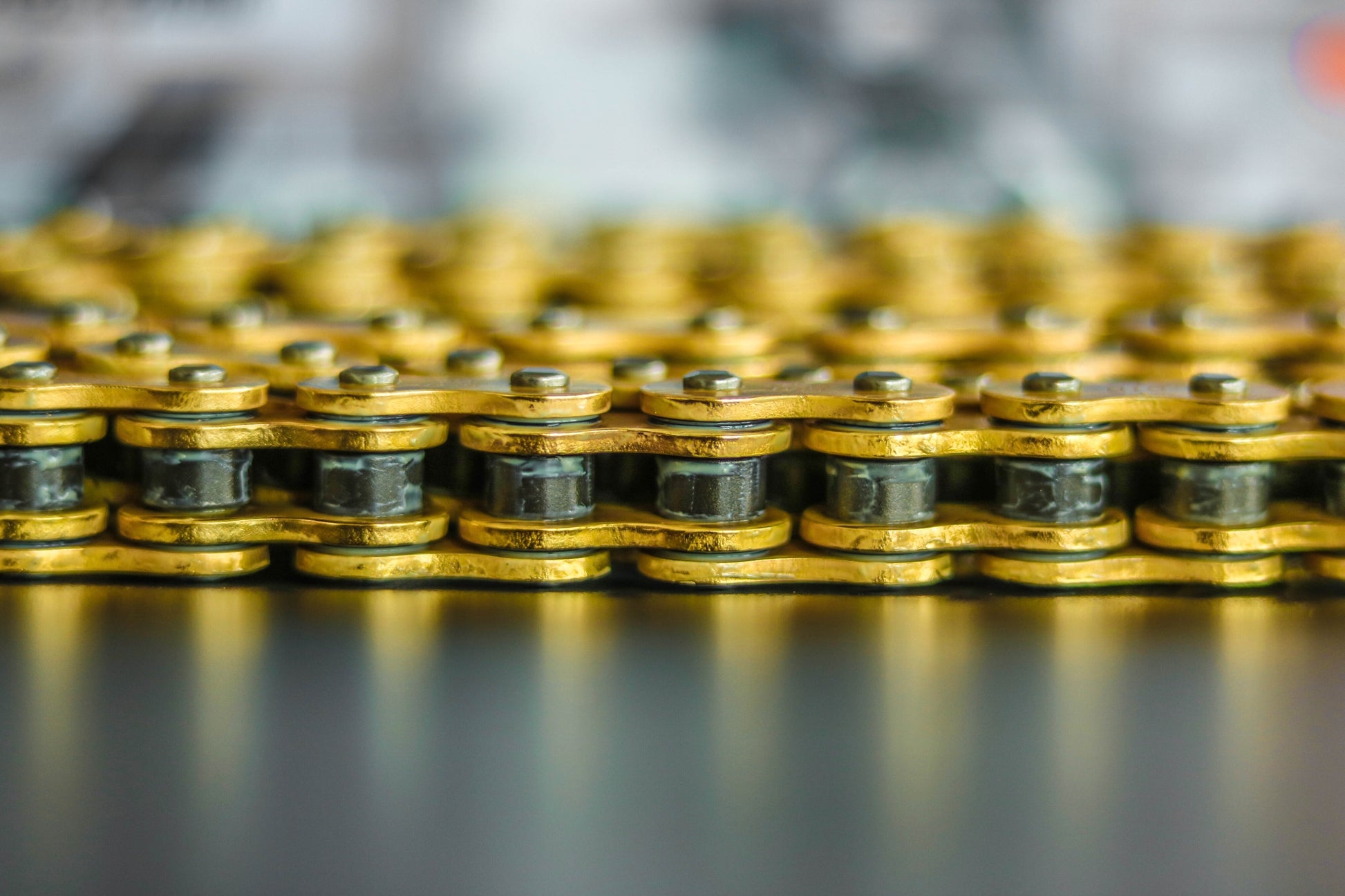 - Design Elegante: Os elos externos dourados destacam a aparência esportiva da sua moto.