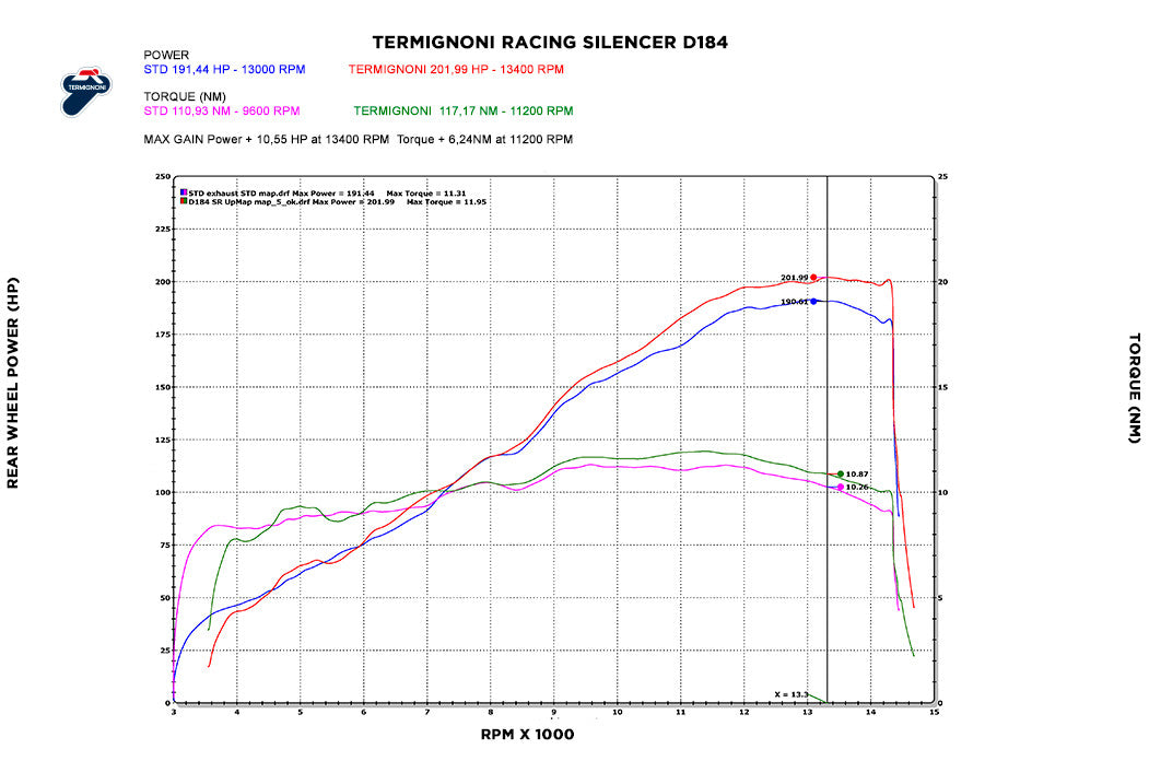 - Material do silenciador: Titânio/Aço inoxidável – Leve, robusto, resposta de aceleração otimizada e desempenho otimizado para uso em pista.