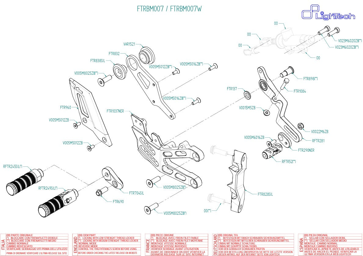O sistema de pedaleiras LighTech FTRBM007/W é o upgrade de alta performance para todos os pilotos da BMW M1000RR K66 (anos de modelo 2021–2026) que buscam a mais alta precisão, máxima ajustabilidade e absoluta fiabilidade – na estrada e especialmente na pista de corrida.