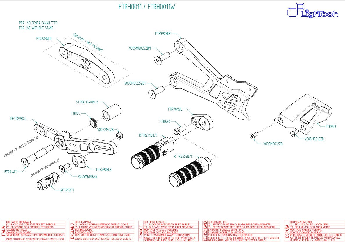 O sistema de pedaleiras LighTech FTRHO011/W para a Honda CBR 1000 RR-R Fireblade SC82 (anos de fabricação 2020–2026) foi desenvolvido com experiência direta da MotoGP e WSBK. Combina a mais alta qualidade de fabricação com funcionalidade e um visual esportivo – perfeito para pilotos exigentes na estrada e na pista.