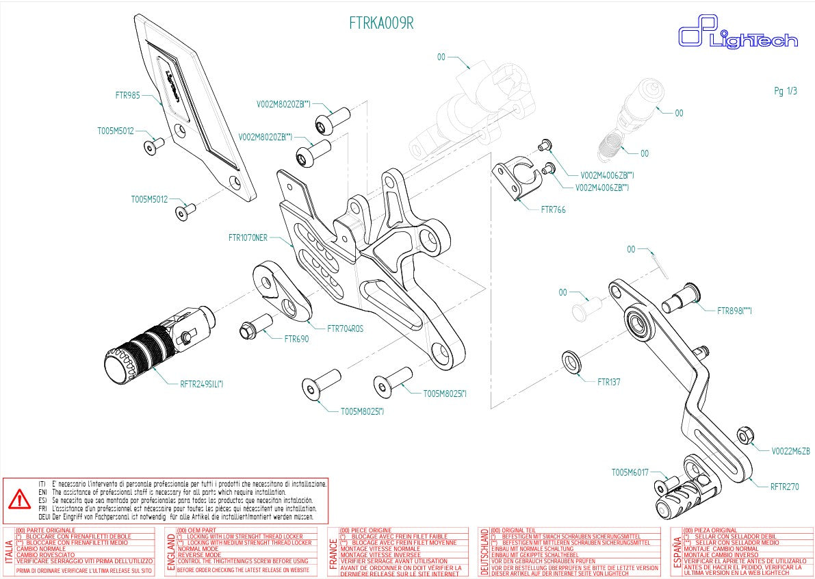 Sistema de pedais R LighTech com inversor Kawasaki ZX-6R/636/RR (05-25) FTRKA009R