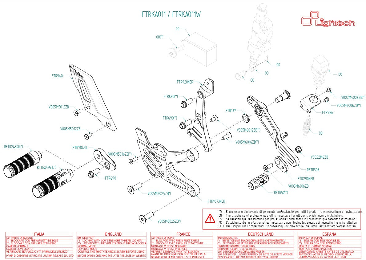 O LighTech FTRKA011/W é o sistema de pedaleiras ideal para pilotos orientados para o desporto da Kawasaki ZX-10R / RR (2021–2025). Ele combina tecnologia CNC sem compromissos com materiais de alta qualidade para um feedback e resistência ótimos – tanto na estrada quanto na pista de corrida.