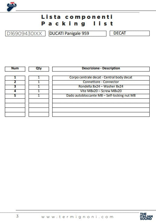 Peça agora e otimize o desempenho da sua Ducati Panigale 959 com o tubo de substituição do catalisador Termignoni!